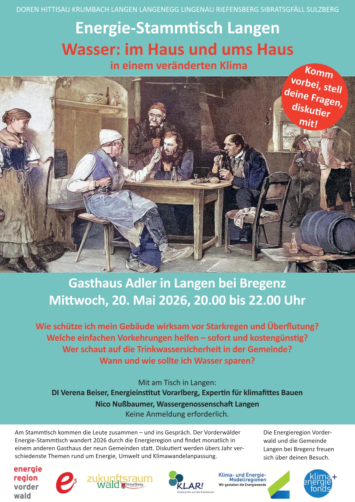Am Stammtisch kommen die Menschen zusammen – und unkompliziert ins Gespräch. In diesem Sinne laden die Vorderwälder Gemeinden 2026 ein ganzes Jahr lang zum Energie-Stammtisch.