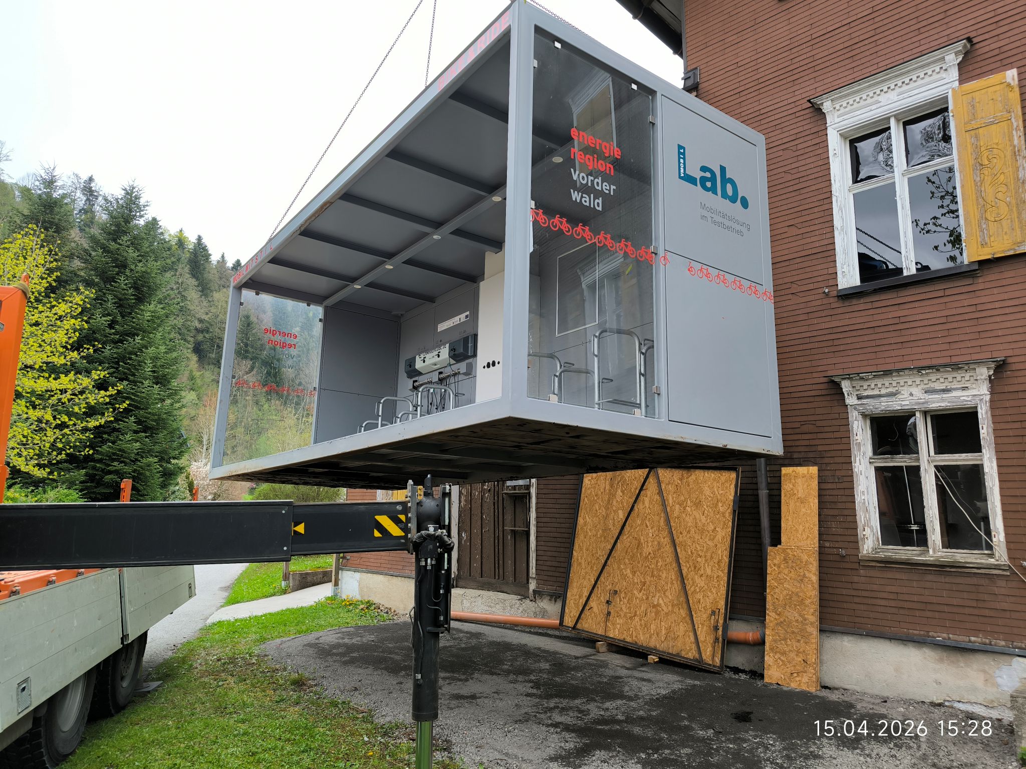 Die mobile Fahrradabstellanlage "ChargerCube" ist weitergezogen und steht in diesem Sommer beim Freibad Hittisau.
