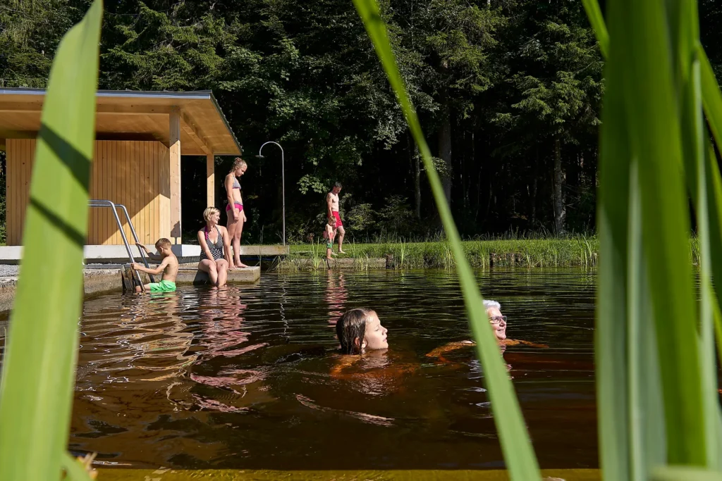Moore sind immense CO2-Speicher. In Sulzberg kann dieserr Speicher auf sehr angenehme Weise erlebt werden: ein frei zugängliches Moorbad verspricht erfrischende Abkühlung in heißen Sommermonaten. Mit einer Wasserfläche von 200 m2 bietet das Moorbad in Sulzberg Oberköhler einen herrlichen Schwimmbereich und einen angenehm seichten Flachwasserbereich. Die speziellen Wasserpflanzen in der Flachwasserzone sorgen nicht nur für biologische Reinigung, sondern sie verwandeln das Moorbad in ein artenreiches Biotop. Das parkähnliche Umfeld ist ein beliebter Ort für Freizeit, Spiele, Picknick, Grillen und Sonnenbaden. Zur Einrichtung gehört auch ein Umkleidebereich mit WC.